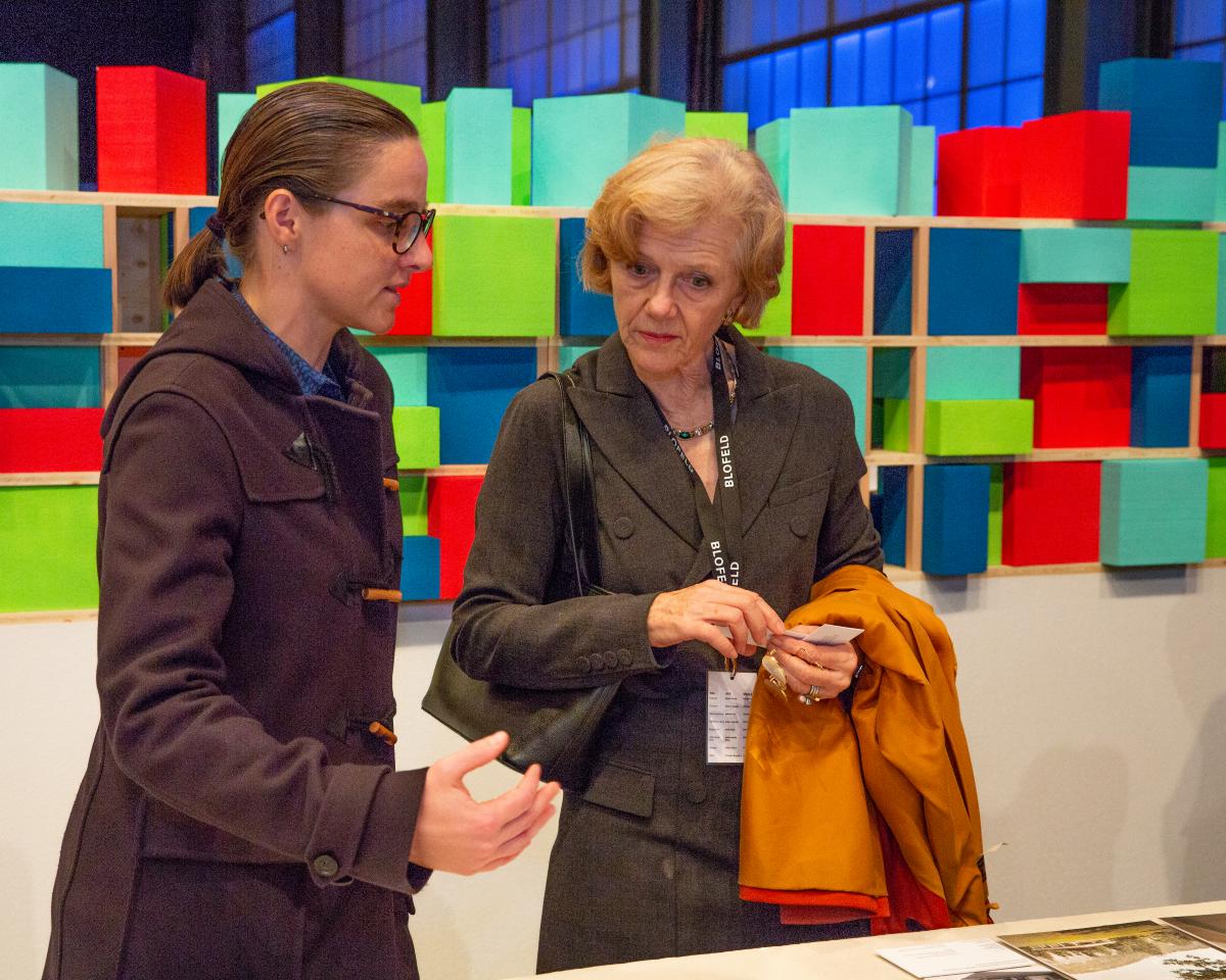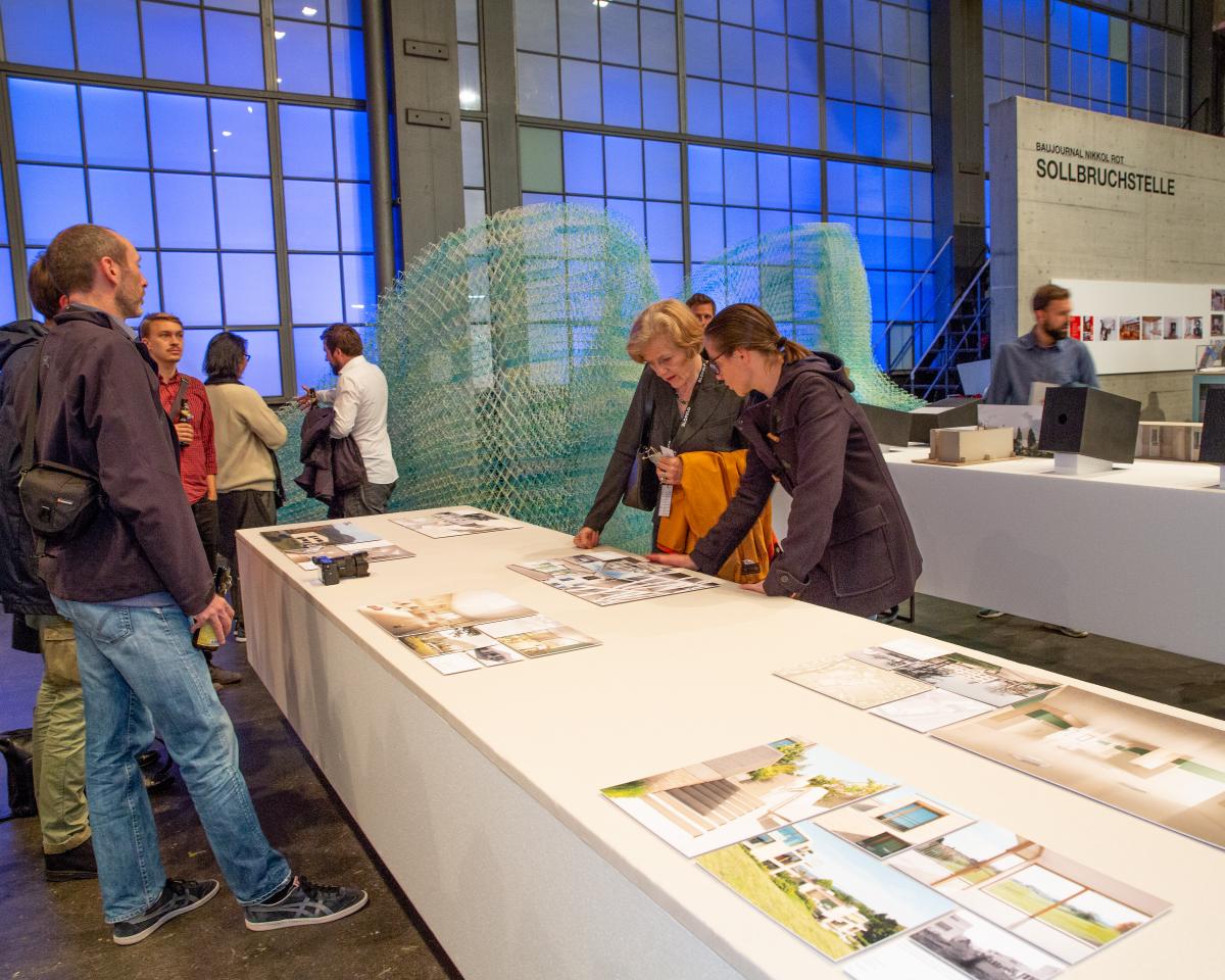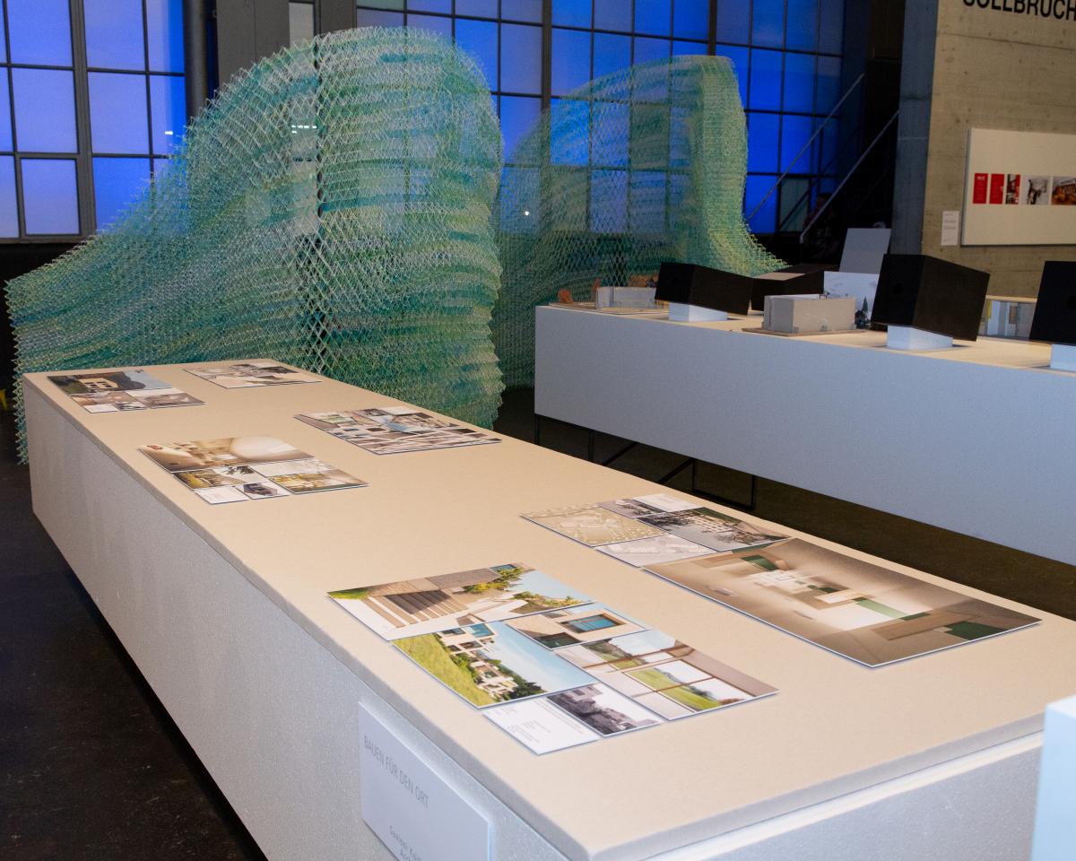 Unser weisser Kubus liegt auf einem Sockel. Mit der grossen Fläche von 100/400cm nach oben wird er zu einem Tisch, auf dem wir Projekte präsentieren. Ca. 4 bis 6 Projekte werden farbig und grossformatig gezeigt und können von allen Seiten betrachtet werden. Auf den Seitenflächen des weissen Kubus sind - analog einer Legende zum Werk in einer Kunstaustellung - kleine Referenzbilder des Ortes zu sehen.