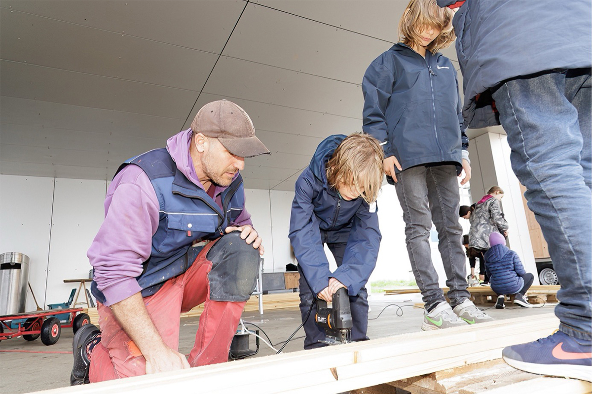 Über 250 Kinder waren aktiv in den Prozess involviert, von der Konzeption bis zur Fertigstellung der Dachlattenobjekte. Diese Woche bot nicht nur eine Plattform für handwerkliches Geschick und kreativen Ausdruck, sondern auch für die Vertiefung, wie ein fertiggestelltes Objekt in Form und Raum wirkt. Indem die Kinder auf dem Pausenplatz eigene Nischen und Rückzugsorte schufen, erlebten sie, wie lustig und aufregend es ist, ihre eigene kleine Welt zu gestalten.